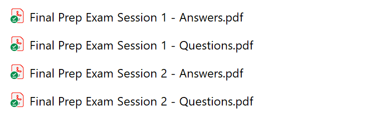Final Prep Exam contains questions and answers in 2 sessions.