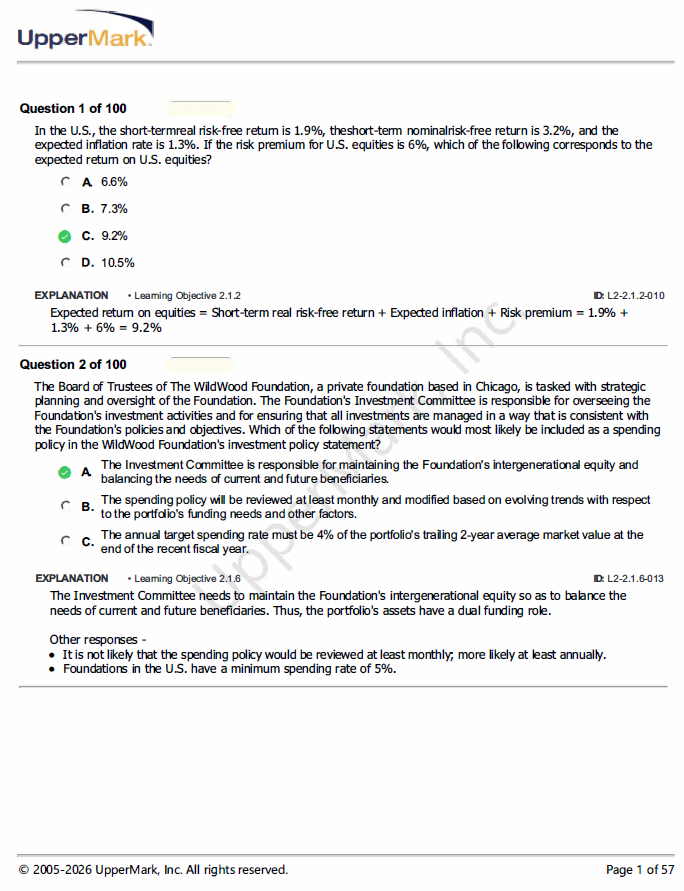 For sale is CAIA 2026 Level 2 Uppermark Final Review Video and Exams