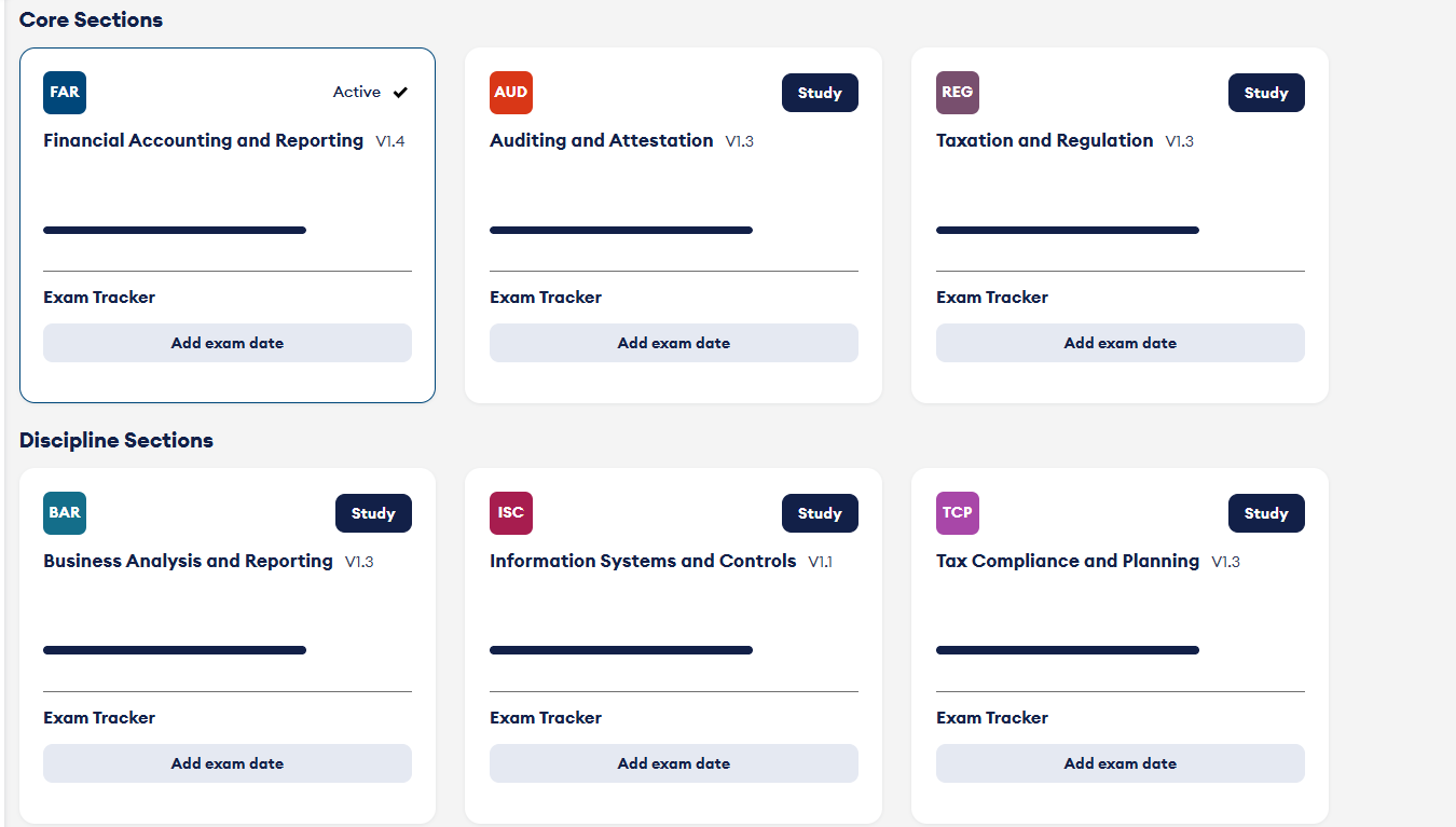Mini Exams – Focused practice for specific sections and topics. (FAR, AUD, REG, TCP, BAR, ISC)