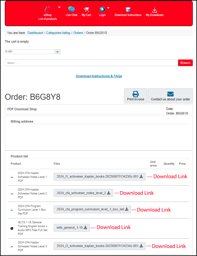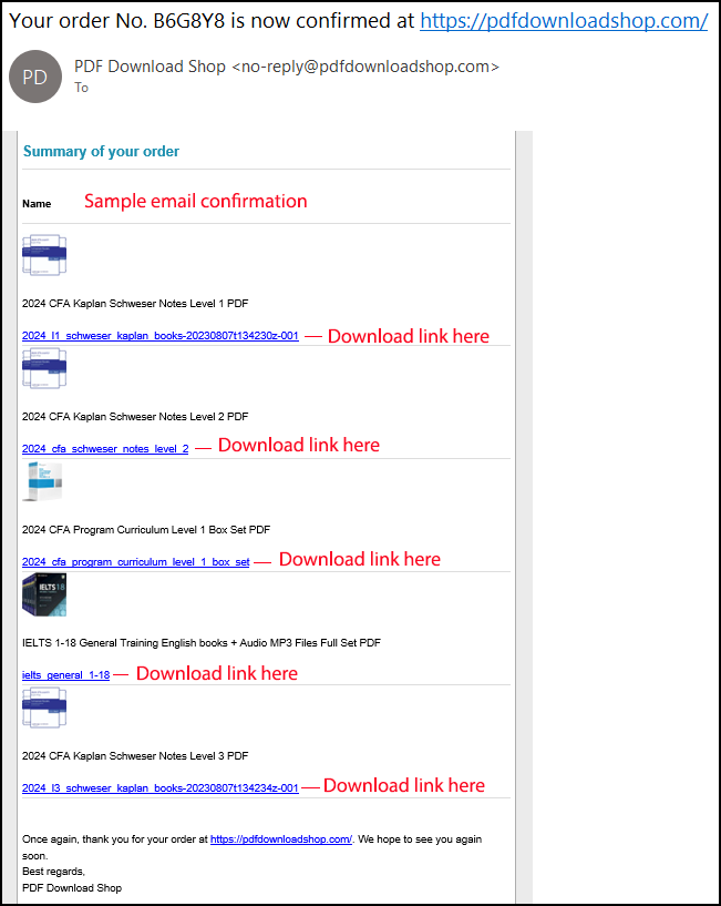 - After successful payment you can see all of your downloads available on the Order Confirmation Page, through your Email (You will be sent download links to your files - check your junk/spam mailbox too) and in My Downloads. See sample images below.