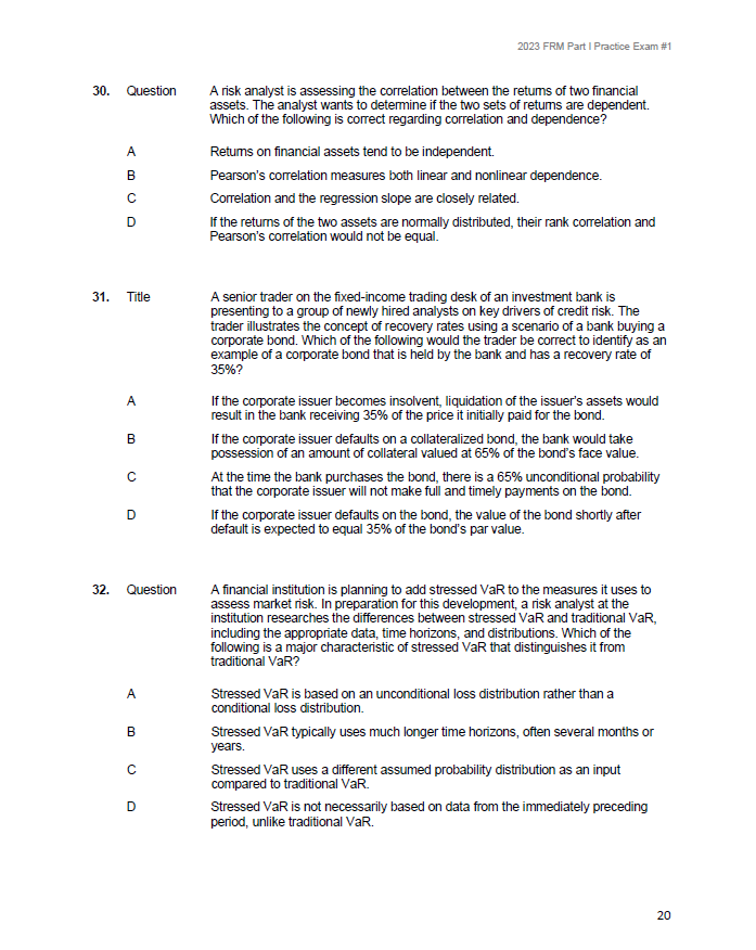 FRM 2023 GARP PART 2 Practice Exam