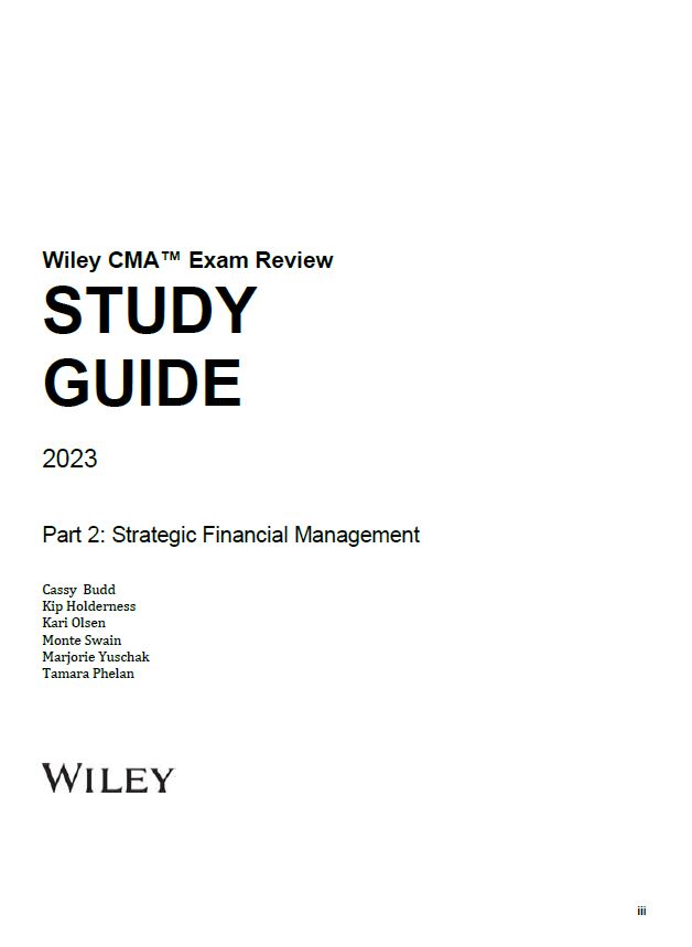 The Wiley CMA Exam Review 2023 Part 2 Study Guide: Strategic Financial Management set is a comprehensive and accurate handbook designed to help you identify and master each of the competencies covered by the Part 2 of the 2023 Certified Management Accountant exam.