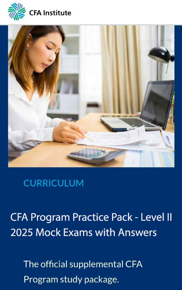 For sale is the CFA 2025 Institute Practice pack L2 Mock Exams with Answers: