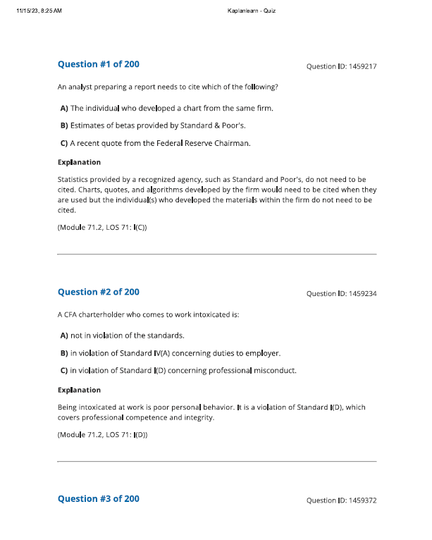2024 CFA Kaplan Schweser Learn Quiz Level 1 PDF