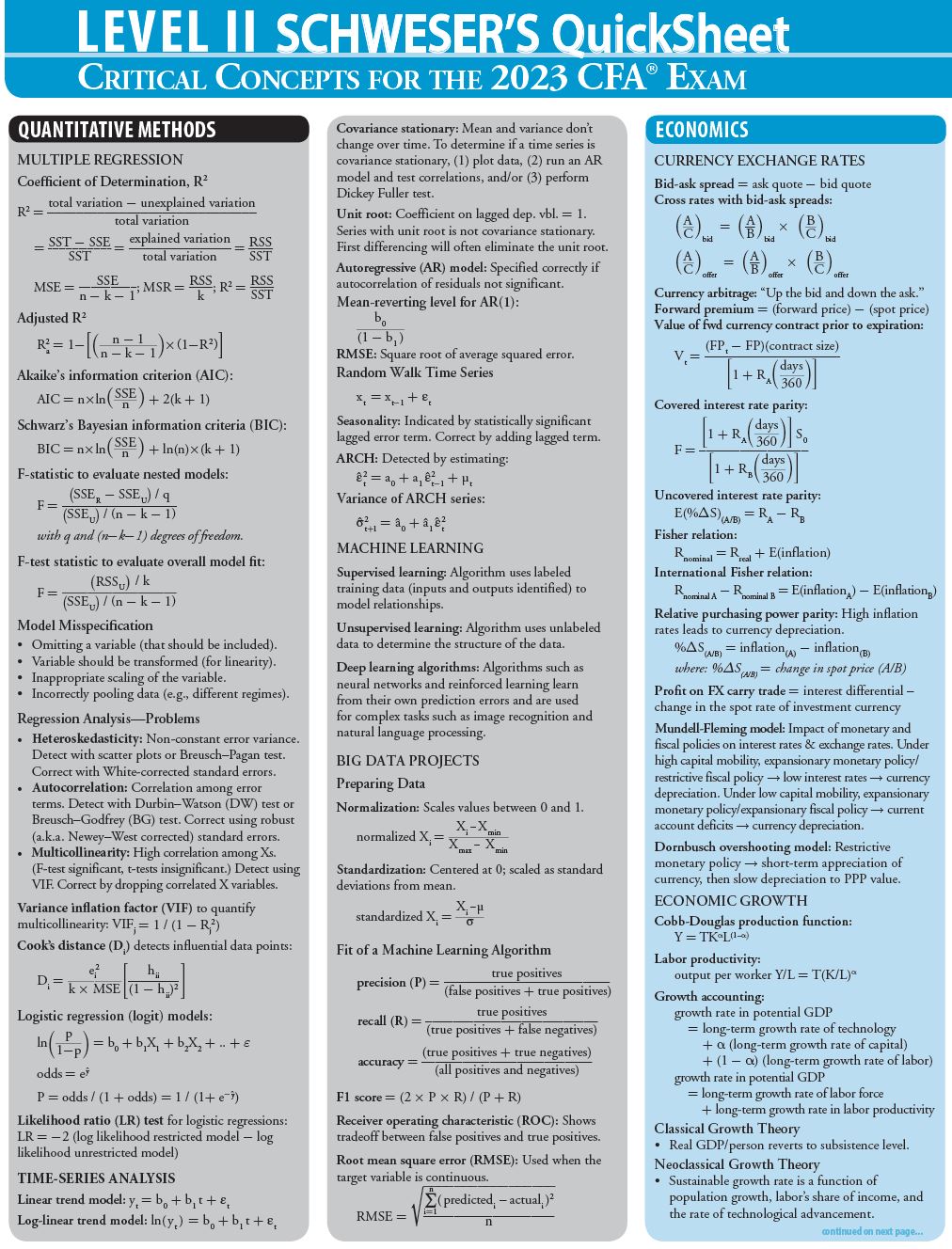 2023 CFA Level 2 Schweser's Quicksheet PDF
