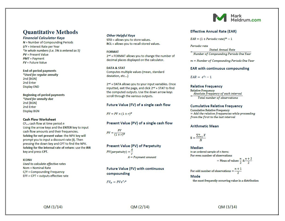 2024 CFA Mark Meldrum Notes + Formula Sheet Level 1