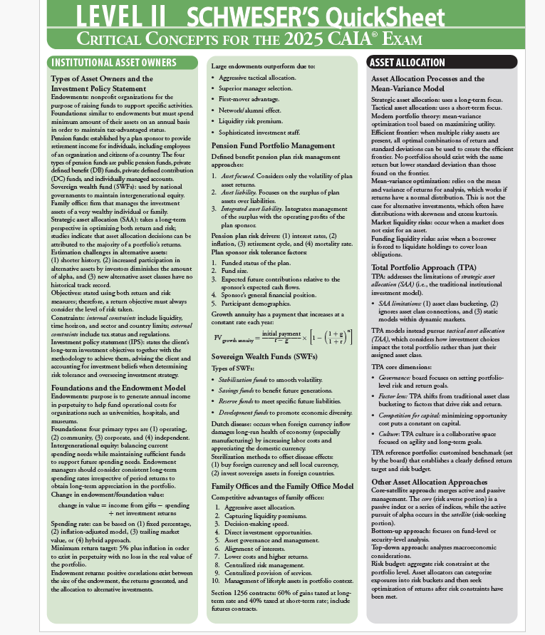 CAIA 2025 Schweser Notes Level 2 with Quicksheet PDF